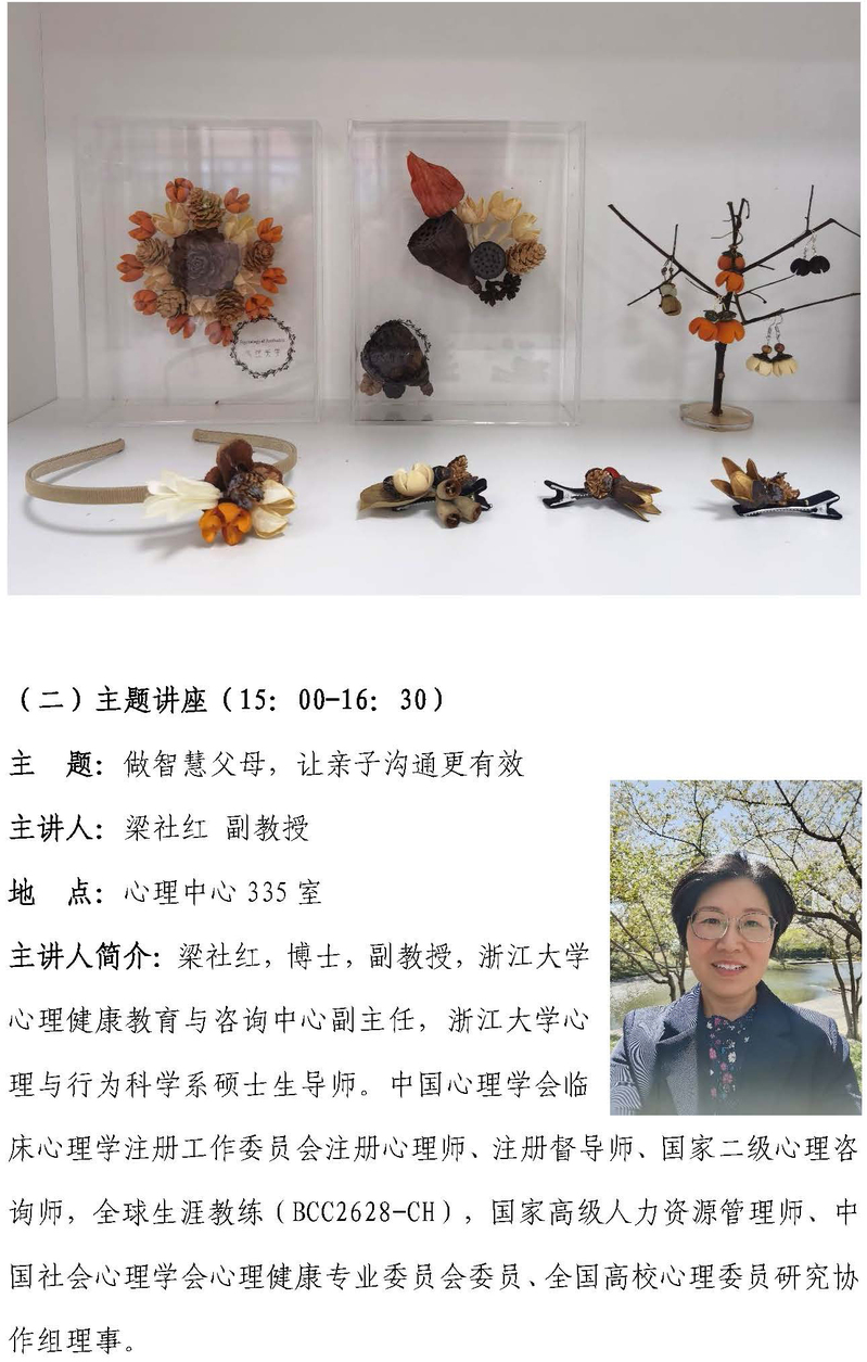 干果diy体验。果实代表成熟与收获、种子代表对未来的希望与期待,用果实制作独一无二的装饰品,将自然元素引入心理领域,将果实赋予生命力的意象和光亮。经由融入-体验-共鸣-分享的历程,让参与者体验创造力和美感,放松身心。
